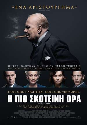 Ο Τζο Ράιτ, (σκηνοθέτης των ταινιών “Περηφάνια και Προκατάληψη”, “Εξιλέωση” και “Άννα Καρένινα”) επιστρέφει δυναμικά στην μεγάλη οθόνη με την κινηματογραφική βιογραφία του Ουίνστον Τσόρτσιλ. Το σενάριο υπογράφει ο υποψήφιος για Όσκαρ για την ταινία “Η Θεωρία των Πάντων”, Άντονι ΜακΚάρτεν. Πρωταγωνιστής της ταινίας ο μεγάλος ηθοποιός Γκάρι Όλντμαν, ο οποίος υποδύεται τον Ουίνστον Τσόρτσιλ.Ο ηθοποιός τιμήθηκε με τη Χρυσή Σφαίρα Α’ Ανδρικού Ρόλου για το ρόλο αυτό πριν από λίγες μέρες στην 75η Τελετή Απονόμης των Βραβείων Χρυσής Σφαίρας, ενώ θεωρείται μεγάλο φαβορί και για τα Όσκαρ.