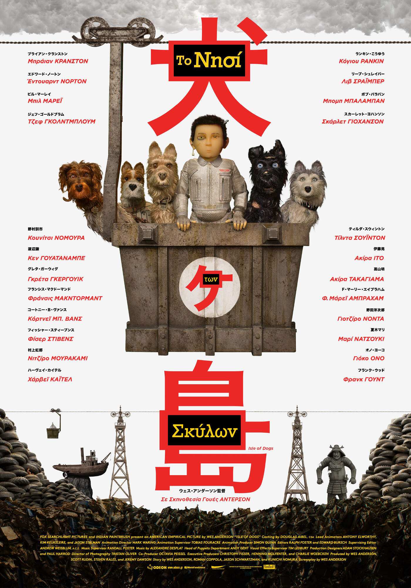 Ηθοποιοί: (φωνές): Φ. Μάρεϊ Άμπραχαμ, Μπομπ Μπάλαμπαν, Μπράιαν Κράνστον, Γκρέτα Γκέργουιγκ, Τζεφ Γκόλντμπλουμ, Ακίρα Ίτο, Σκάρλετ Γιόχανσον, Χάρβεϊ Καϊτέλ, Φράνσις ΜακΝτόρμαντ, Μπιλ Μάρεϊ, Μαρί Νατσούκι, Γιοτζίρο Νόντα, Κουνίτσι Νομούρα, Έντουαρντ Νόρτον, Γιόκο Όνο, Κόγιου Ράνκιν, Λιβ Σράιμπερ, Φίσερ Στίβενς, Τίλντα Σουίντον, Ακίρα Τακαγιάμα, Κόρτνεϊ Μπ. Βανς, Φρανκ Γουντ