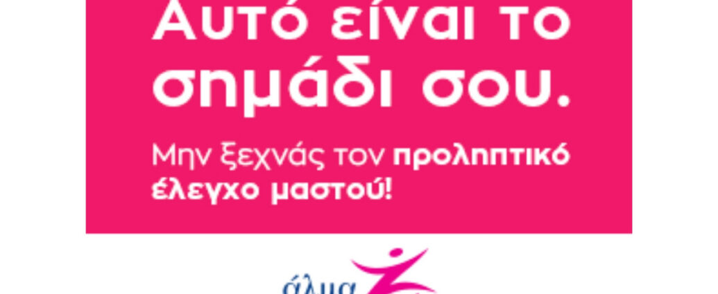 Η εκστρατεία ευαισθητοποίησης “Αυτό είναι το σημάδι σου” πραγματοποιείται με αφορμή τον Οκτώβριο, μήνα ευαισθητοποίησης για τον καρκίνο του μαστού, από τον Πανελλήνιο Σύλλογο Γυναικών με Καρκίνο Μαστού “Άλμα Ζωής”.