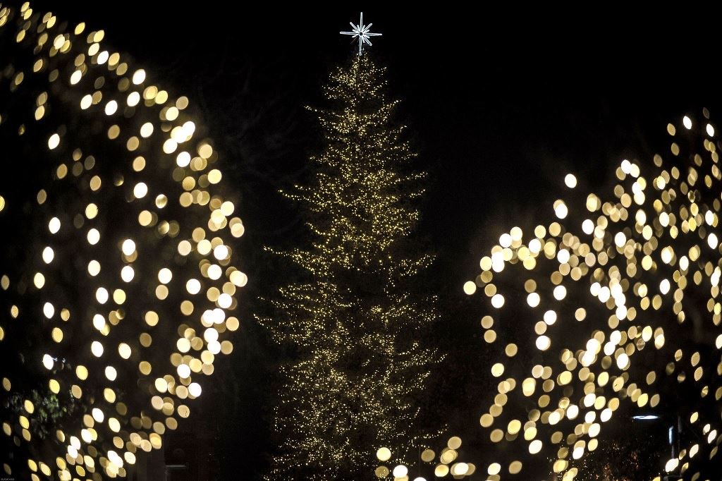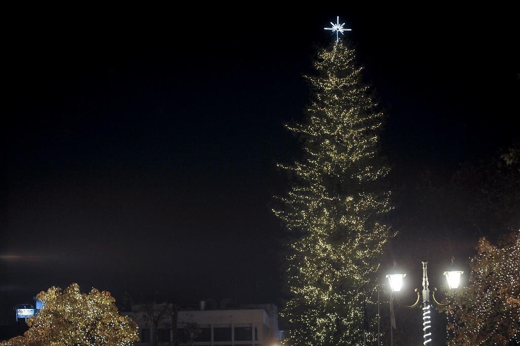 Στην κεντρική πλατεία των Τρικάλων φωταγωγήθηκε χθες το εντυπωσιακό χριστουγεννιάτικο δέντρο ύψους περίπου 33 μέτρων.