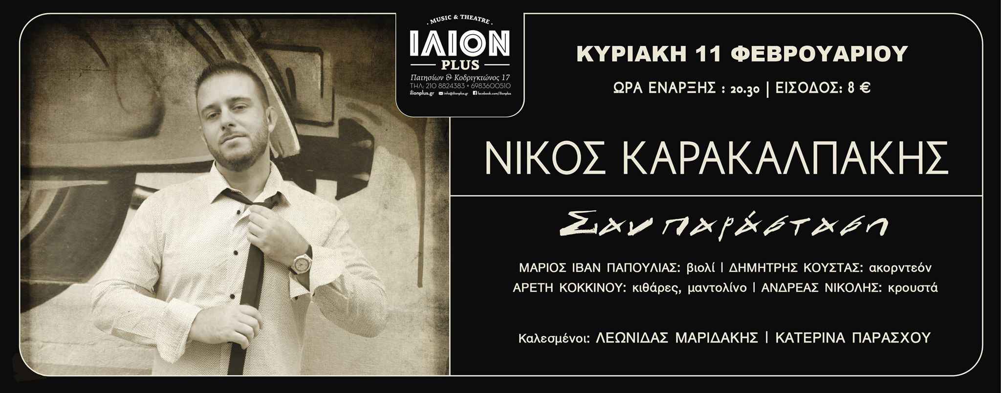 Ο Νίκος Καρακαλπάκης έρχεται στην σκηνή του ΙΛΙΟΝ  PLUS για μια μοναδική βραδιά την Κυριακή 11 Φεβρουαρίου στις 20.30.