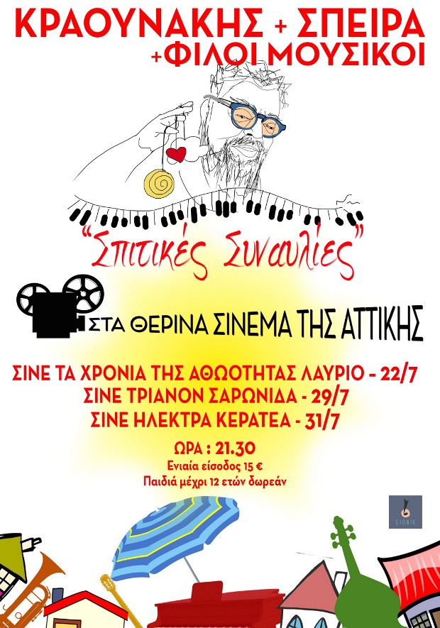 Ο Σταμάτης Κραουνάκης η Σπείρα και φίλοι μουσικοί στα Θερινά Σινεμά της Αττικής.