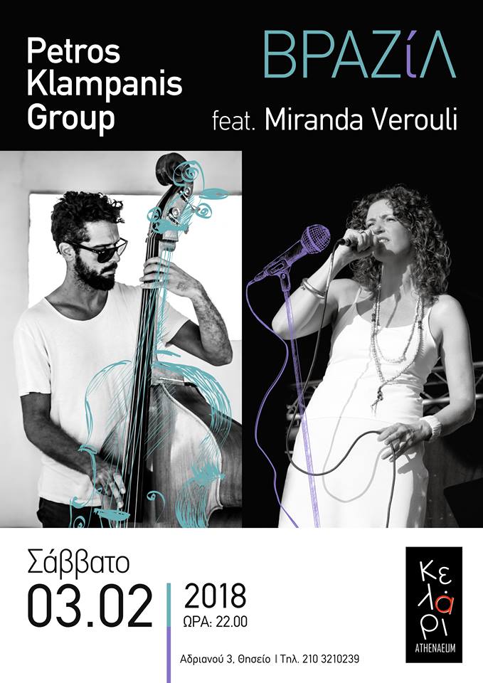 Δύο από τους σημαντικότερους καλλιτέχνες της ελληνικής Jazz σκηνής, ο Πέτρος Κλαμπάνης και η Μιράντα Βερούλη παρουσιάζουν στο Kελάρι του «Athenaeum» ένα αφιέρωμα στην πλούσια μουσική παράδοση της Βραζιλίας, το Σάββατο 3 Φεβρουαρίου, του μήνα όπου λόγω καρναβαλιού, η βραζιλιάνικη μουσική έρχεται στο προσκήνιο!
