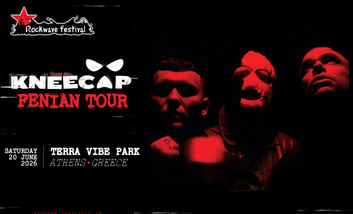 Μετά από ένα ασύλληπτο σερί κορυφαίων στιγμών το 2025 – με την αυτοβιογραφική τους ταινία να βραβεύεται σε BAFTA και Sundance, το Fine Art να αποσπά διθυραμβικές κριτικές, εμφανίσεις σε κορυφαία φεστιβάλ όπως Coachella και Glastonbury και τη χρονιά να κλείνει με δύο sold-out βραδιές μπροστά σε 24.000 Fenians στο 3Arena του Δουβλίνου – οι Kneecap υποδέχονται το 2026 πιο δυνατοί από ποτέ.