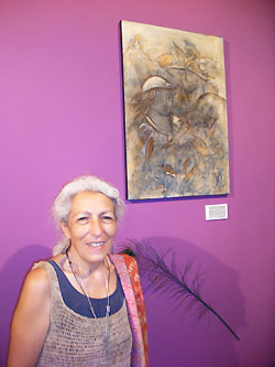 Στην έκθεση με τίτλο “To ταξίδι της μνήμης”, περιλαμβάνονται πίνακες ζωγραφικής, κάποιοι από τους οποίους παρουσιάζονται σε χαρτί χειροποίητο, παρασκευασμένο σύμφωνα με μια παλιά παραδοσιακή τεχνική που διδάχτηκε η καλλιτέχνις από τις αγρότισσες της Chiapas στο Μεξικό!