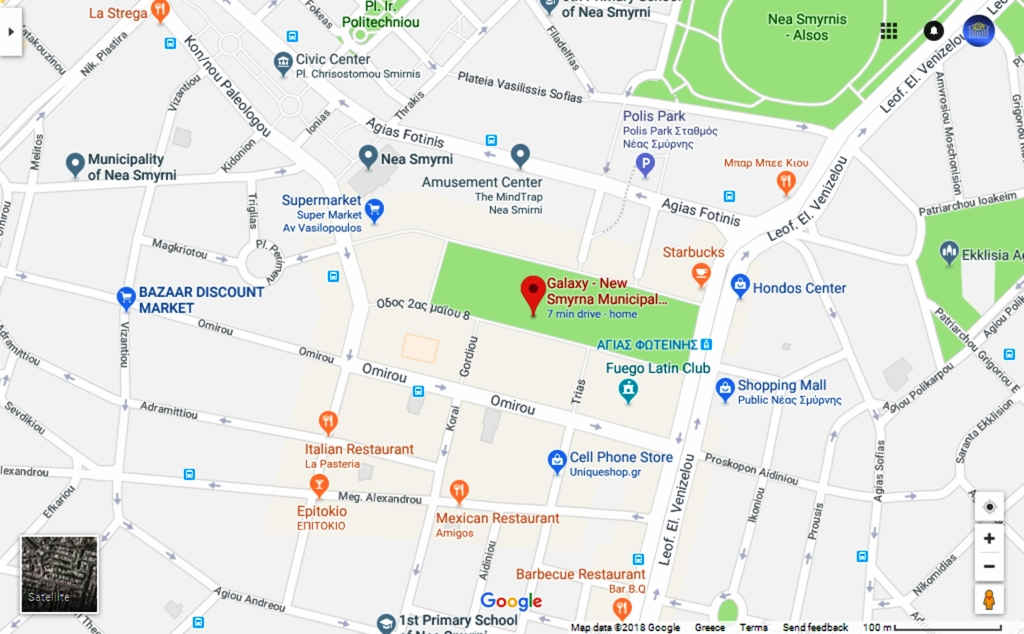 Διεύθυνση: 2ας Μαϊου 16 (κεντρική πλατεία Νέας Σμύρνης), ΤΚ 171 21
