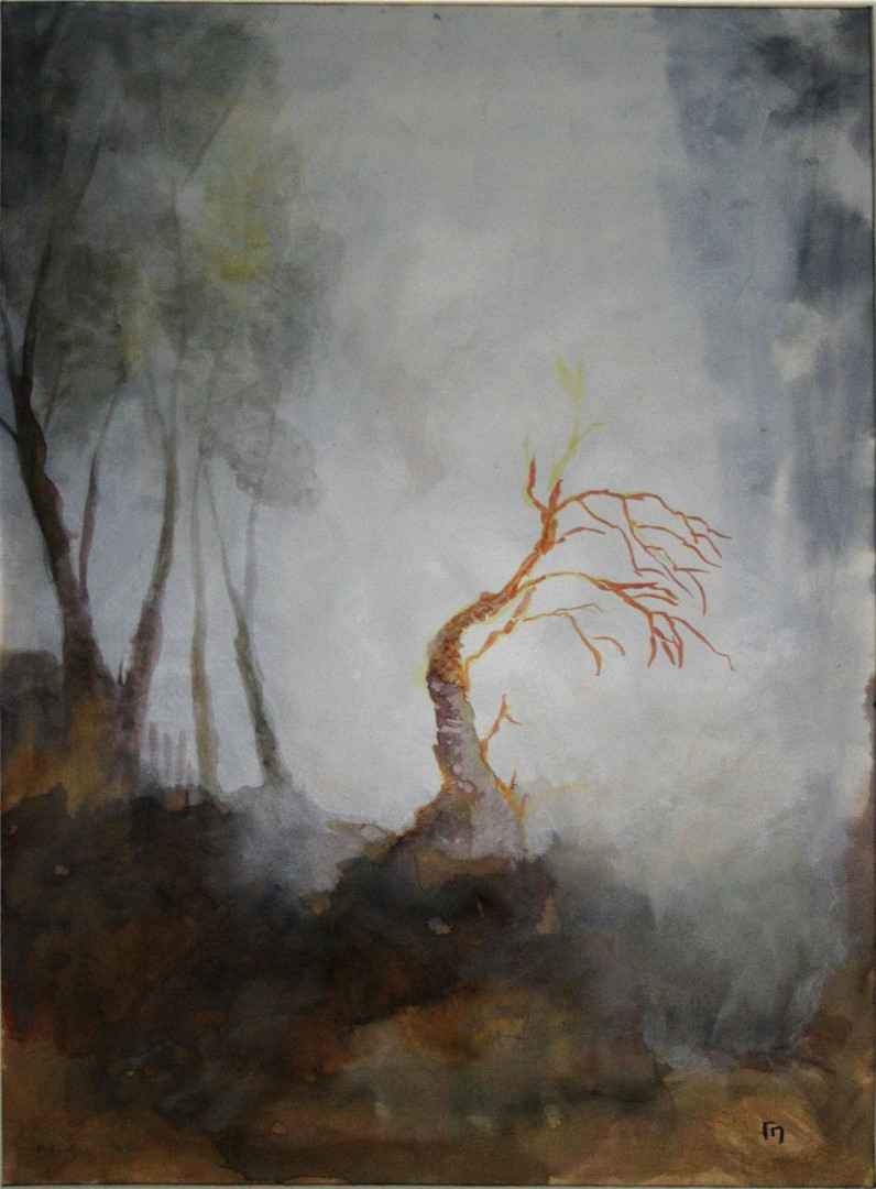 Σαν τα φρικτά χέρια που παλεύουν να ενωθούν στον διάκοσμο τής Καπέλα Σιξτίνα, αυτά τα δέντρα τολμούν παράλληλες διαδρομές, ασύμβατες, όσο κι αν φαινομενικά τείνουν το ένα προς το άλλο. Στην πραγματικότητα είναι ελεύθερα κάτω από τον μουχλιασμένο ουρανό που κρέμεται απειλητικά πάνωθέ τους και προκαλεί αλυσιδωτές αντιδράσεις στο «θυμικό» των αψύχων, που μόνον εμείς, οι βιαστικοί κι αλαζονικοί άπληστοι, ακόρεστοι άνθρωποι θεωρούμε πως στερούνται ζωής κι είναι απλώς αντικείμενο της επιχειρηματικότητάς μας αν όχι και του θαυμασμού μας (σπανιότατα).