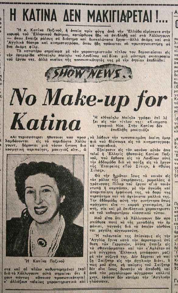 Η Κατίνα Παξινού υπήρξε η πρώτη Ελληνίδα ηθοποιός που κατάφερε να σταθεί στο Χόλιγουντ και μάλιστα με δικούς της όρους, να διαπρέψει θεατρικά και κινηματογραφικά στην Ευρώπη, να ξεχωρίσει ως τραγωδός παγκοσμίου βεληνεκούς.