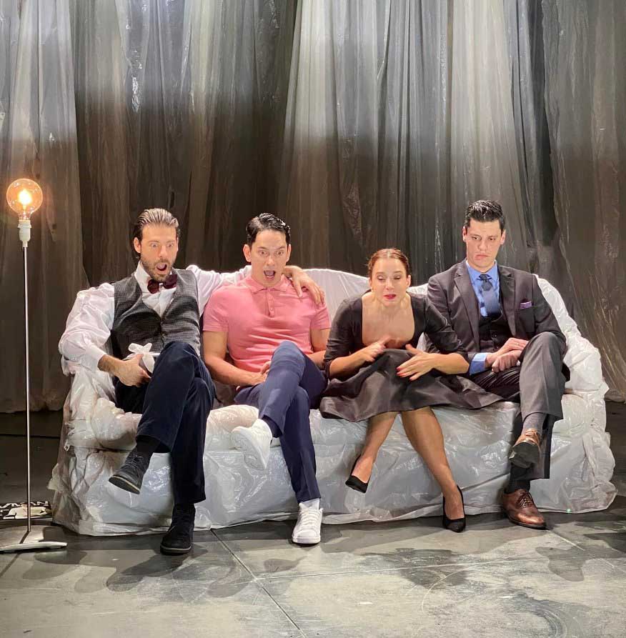 Ελκυστικές παρουσίες όλοι τους με αξιοθαύμαστη άνεση στην εναλλαγή συναισθημάτων και μετάβασης από το χιούμορ στο τραγικό και το σοβαρό, με καθαρό λόγο, αλλά και την χάρη στην σωματική κίνηση την όμορφα χορογραφημένη, έδωσαν ερμηνείες αξιόλογες καθένας μόνος, αλλά και όλοι μαζί ένα ταιριασμένο ανσάμπλ.