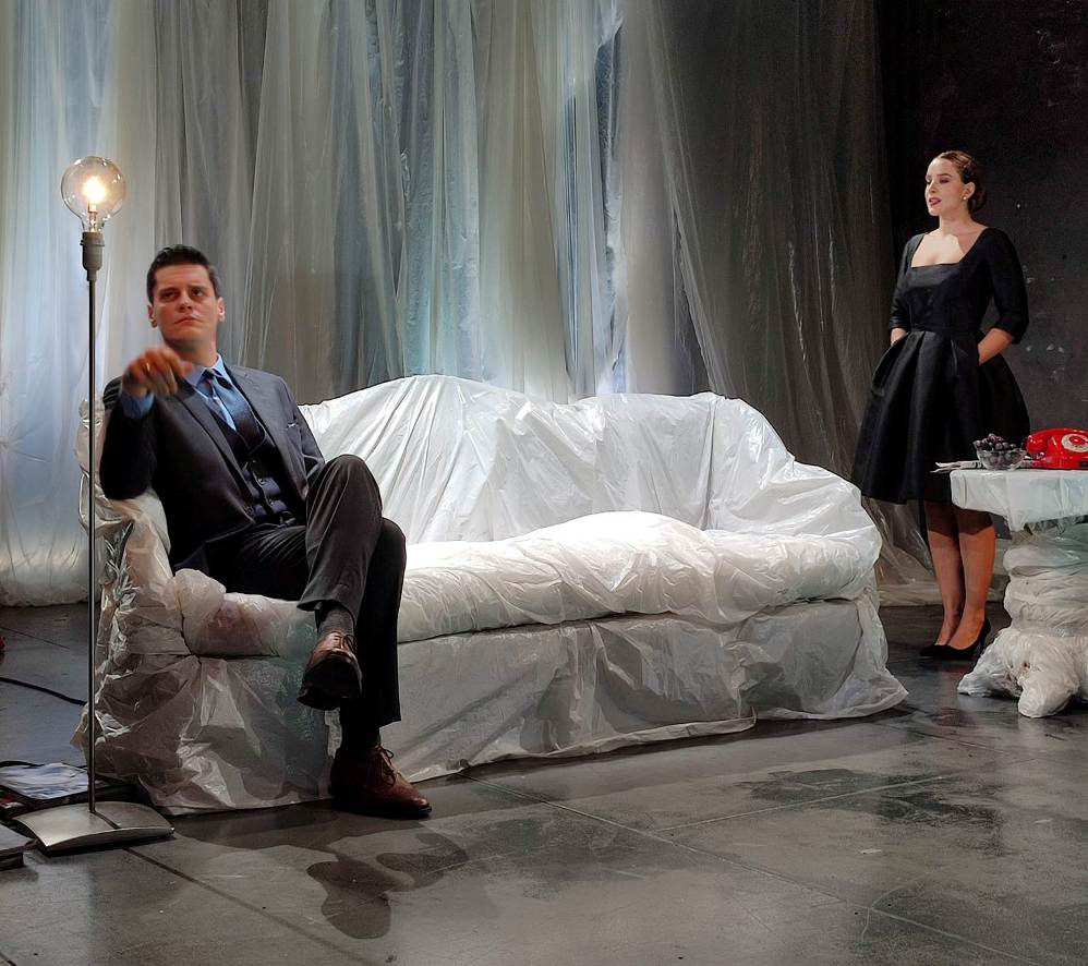 Στην σκηνή, τοποθετεί με αφαιρετική άνεση στον ίδιο χώρο τις οικίες των δύο ζευγαριών αυτήν της Μπελγκράβια και εκείνην του Τσέλσι, σε ένα σκηνικό με τυλιγμένα με νάιλον έπιπλα, γιατί δεν έχουν σημασία και στον αφαιρετικό εσωτερικό διάκοσμο που δίνει την ευκαιρία στον θεατή να επικεντρωθεί στην αποκρυπτογράφηση του λόγου και την ερμηνεία των συναισθηματικών εκφράσεων των ηθοποιών.