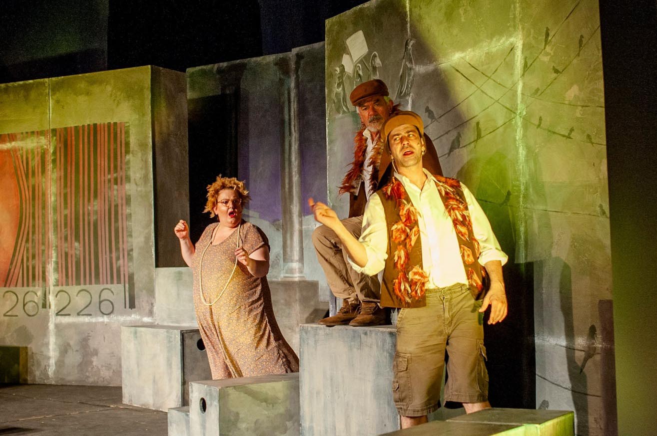 Ο Θανάσης Βισκαδουράκης τα κάνει όλα με καταιγιστικό ρυθμό, από το βρωμερό οπορτουνιστικό ποντίκι, μέχρι τον αεικίνητο και πανούργο εωσφόρο, αλλά και το κοριτσάκι που θέλει να παίξει με το σπουργιτάκι, χωρίς να αφήνει ατάκα να πέσει κάτω.