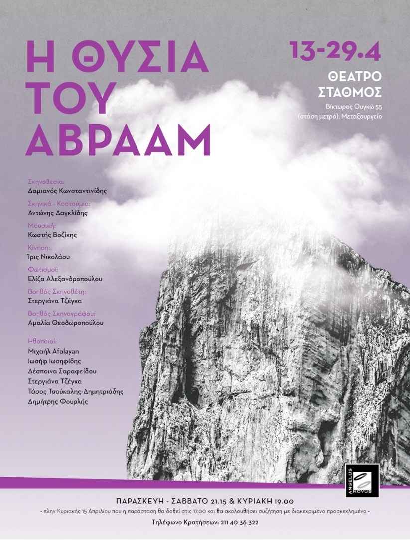 Η παράσταση «Η θυσία του Αβραάμ» στο θέατρο Σταθμός, από την ομάδα Angelus Novus, σε σκηνοθεσία Δαμιανού Κωνσταντινίδη, κάθε Παρασκευή και Σάββατο στις 9:15μ.μ. και κάθε Κυριακή στις 6μ.μ.