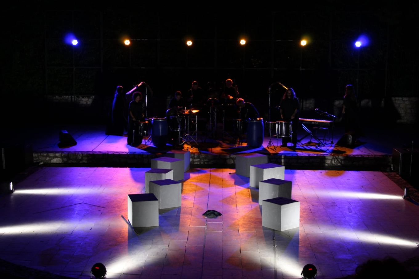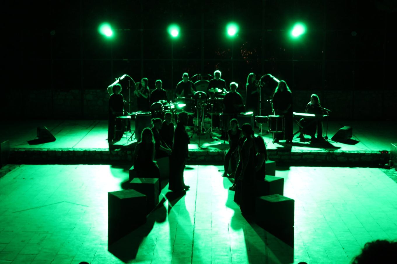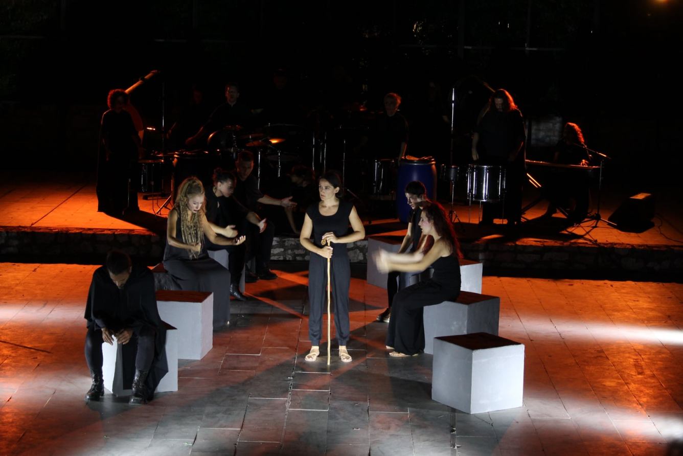 Το σύνολο της Ηχόδρασης άκρως συντονισμένο και εντυπωσιακό ερμηνεύει μια ευφυή σύνθεση του Νίκου Τουλιάτου. Ξεκινούν να μιλάνε τα κρουστά για να υποδεχτούν τους τραγωδούς Ηχοποιούς και να συνεχιστούν τα κρεσέντα κάτω από τους εντυπωσιακούς φωτισμούς του Αλέξανδρου Πολιτάκη.