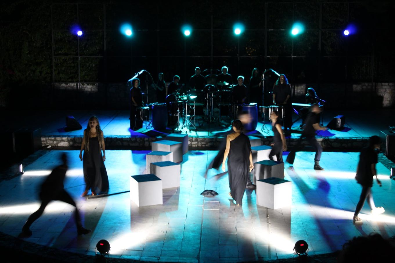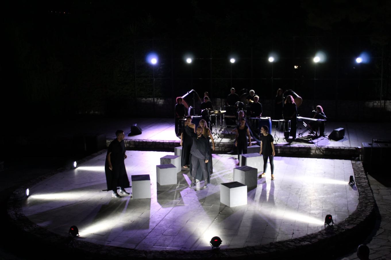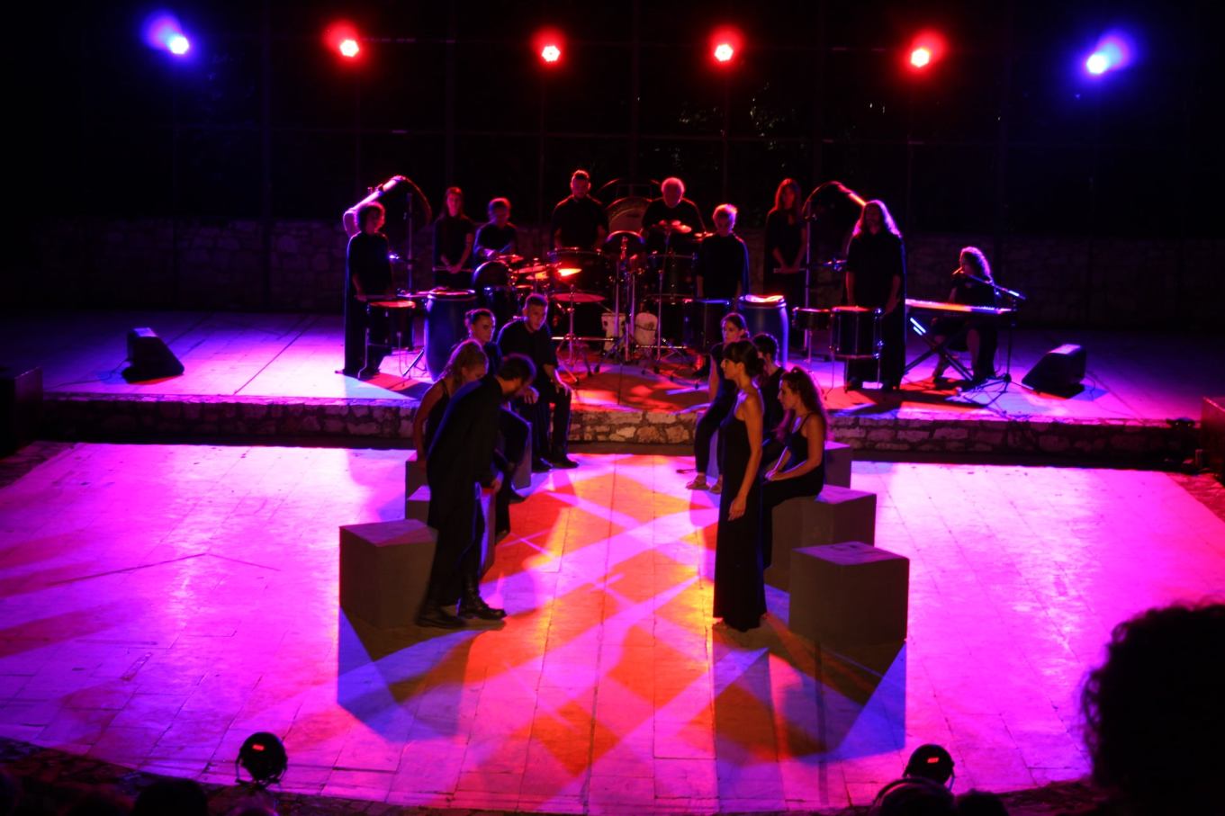 Το σύνολο της Ηχόδρασης άκρως συντονισμένο και εντυπωσιακό ερμηνεύει μια ευφυή σύνθεση του Νίκου Τουλιάτου. Ξεκινούν να μιλάνε τα κρουστά για να υποδεχτούν τους τραγωδούς Ηχοποιούς και να συνεχιστούν τα κρεσέντα κάτω από τους εντυπωσιακούς φωτισμούς του Αλέξανδρου Πολιτάκη.
