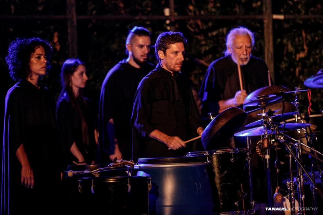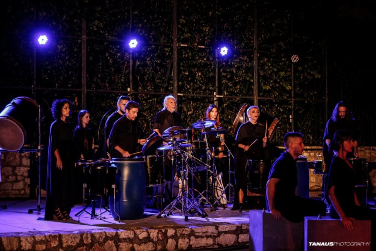 Εδώ η Ομάδα Κρουστών Ηχόδραση, λέει με τα κρουστά όσα δεν θα ειπωθούν με λόγο από τους ηθοποιούς της Κοινότητας Τέχνης Ηχοποιών.