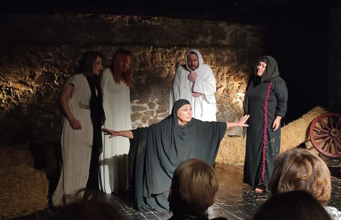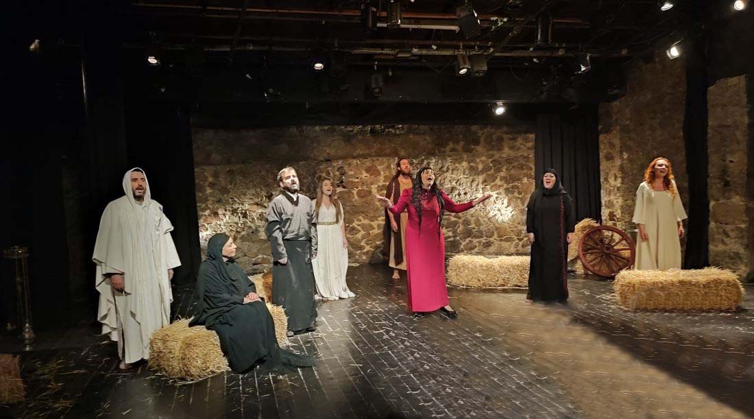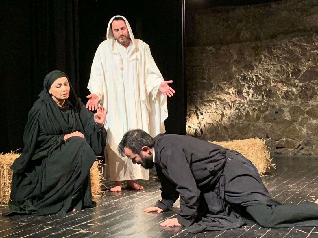 Και φυσικά είναι και μια άλλη κυρία του θεάτρου, η Ευτυχία Αργυροπούλου που αφήνει το στίγμα της σε διπλό ρόλο αυτόν της Τουρκάλας Αισέ, αλλά και της Μαρίας της Μαγδαληνής στο δεύτερο μέρος εκείνο του Θείου δράματος γεμάτο συμβολισμούς.