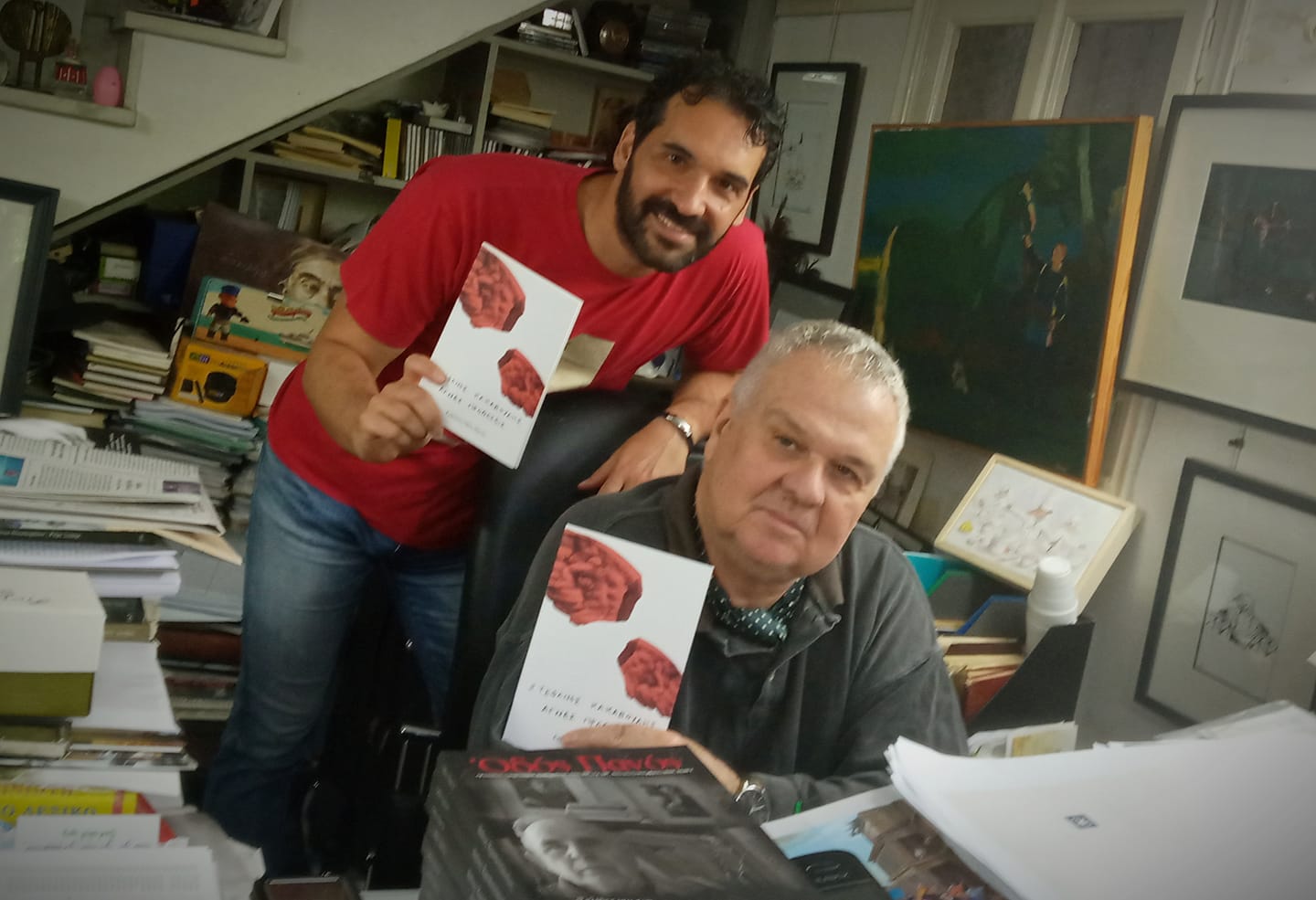Με αυτόν τον τρόπο έσπασε η απαγγελία τελείως και δημιούργησε μια άλλη συνθήκη, την οποία την είδες κιόλας. Έδωσε μια άλλη δυναμική στο κείμενο και πέρασε στο κοινό αυτό. Νομίζω το στοίχημα κερδήθηκε και ο Μάνος παρά τις ανασφάλειες του, βούτηξε σ’ αυτό, διάβασε πάρα πολύ, το δουλέψαμε και βγήκε χημεία.