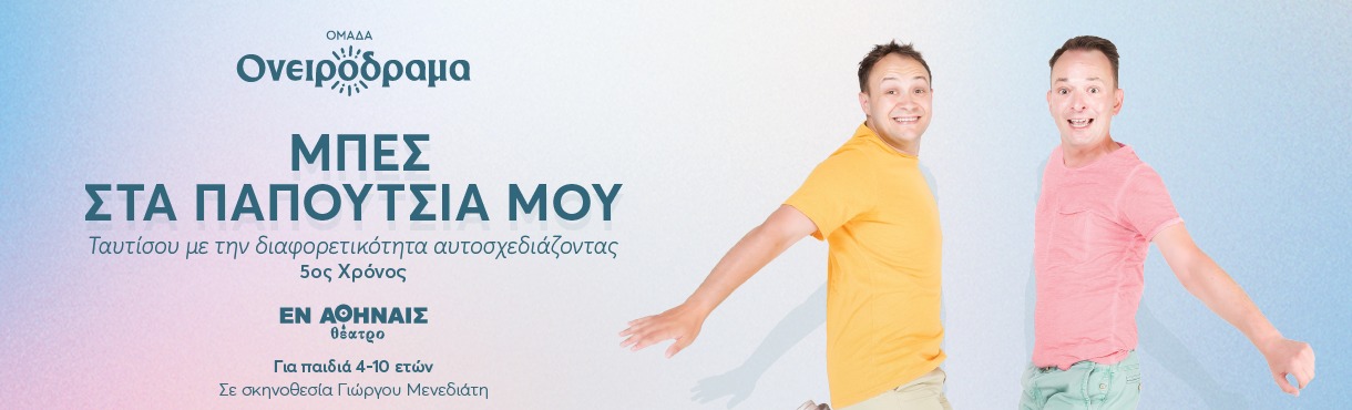 Η διαδραστική παράσταση-βιωματικό εργαστήριο «Μπες στα Παπούτσια μου» συνεχίζει για 5η χρονιά, έχοντας αγαπηθεί από παιδιά, γονείς και εκπαιδευτικούς για το έξυπνο και χιουμοριστικό κείμενο και τις διαδραστικές δράσεις που καλλιεργούν την ενσυναίσθηση και προσεγγίζουν το ευαίσθητο θέμα του σχολικού εκφοβισμού.