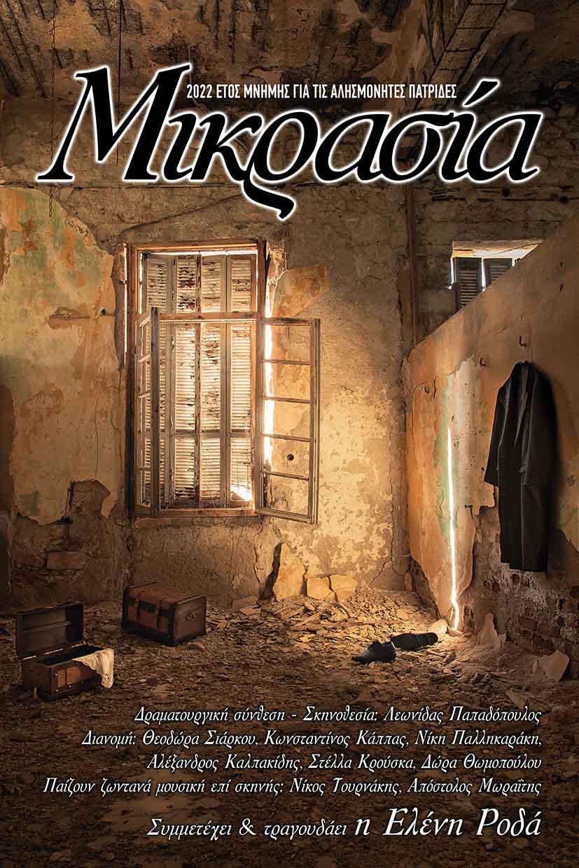 Η «Μικρασία» αποτελεί μια μουσική – θεατρική παράσταση βασισμένη σε αφηγήσεις, τραγούδια και μνήμες μιας εποχής κι ενός τόπου που σημάδεψε τη σύγχρονη ελληνική ιστορία.