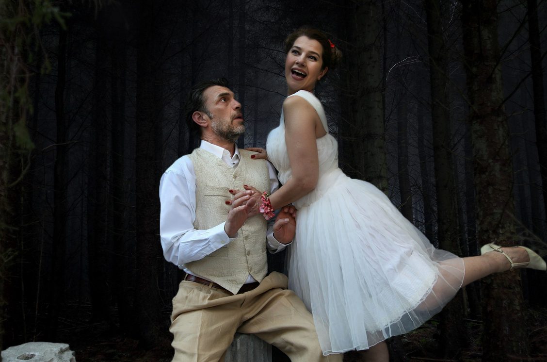 Οι ήρωες της παράστασης δεν ανήκουν ούτε στον κόσμο του παράλογου, ούτε του ρεαλισμού, κινούνται ανάμεσα στο πραγματικό και το φανταστικό, χρησιμοποιούν μια κατασκευασμένη γλώσσα ανάμεσα στην καθαρεύουσα και τη ντοπιολαλιά, στο στυλιζάρισμα και τη φυσικότητα.