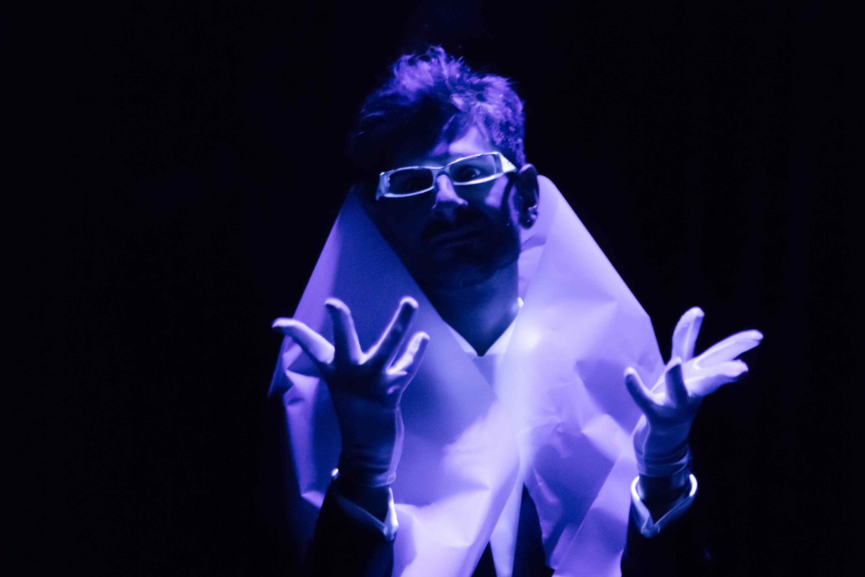 Η λόγια καθαρεύουσα που χρησιμοποιεί, σα γλώσσα της εποχής του, γίνεται δυνατό θεατρικό εργαλείο στο στόμα και στο σώμα του νέου δυναμικού performer Χάρη Φλέουρα, με τόπο την κωμωδία και υπόβαθρο την ανθρώπινη δουλεία.