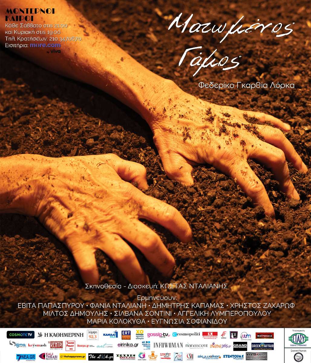 Το αριστούργημα του παγκόσμιου θεάτρου «Ματωμένος Γάμος» του Φεδερίκο Γκαρθία Λόρκα, μετά τη μεγάλη επιτυχία της περασμένης θεατρικής σεζόν, επιστρέφει στο Θέατρο ΜΟΝΤΕΡΝΟΙ ΚΑΙΡΟΙ στο Γκάζι, για 2 η χρονιά, από το Σάββατο 29 Νοεμβρίου και κάθε Σάββατο στις 21:00 και Κυριακή στις 19:00.