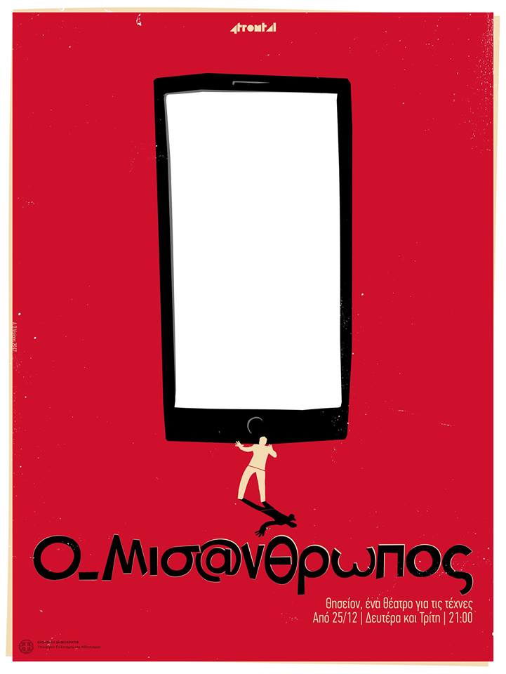 Στο Θησείον, ένα Θέατρο για τις Τέχνες, ο Μισάνθρωπος υποδέχεται το κοινό σε ένα “ανοιχτό” σαλόνι. Σ’ ένα παιχνίδι ανάμεσα στην φαινομενικότητα και την πραγματικότητα, οι χαρακτήρες του έργου, μέσα από τα προφίλ τους ποστάρουν βίντεο, ποιήματα, φωτογραφίες και παρουσιάζονται στους θεατές, οι οποιοί με τη σειρά τους μπορούν να χρησιμοποιούν το κινητό τους κάνοντας like, comment, φωτογραφίζοντας κλπ, καθιερώνοντας έτσι μία θεατρική εμπειρία διαφορετική.