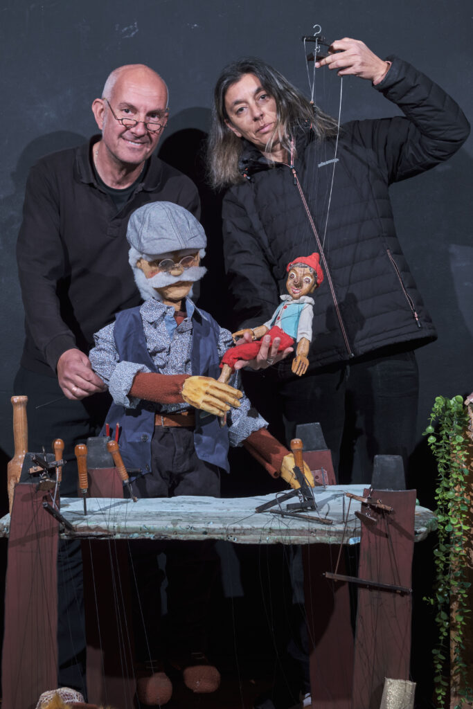 Η παράσταση είναι μία μεταφορά του κλασσικού αριστουργήματος του Κάρλο Κολλόντι σε θέατρο με διάφορα είδη κούκλας όπως μαριονέτες, γιαγαντόκουκλες, μαρόττες κλπ.