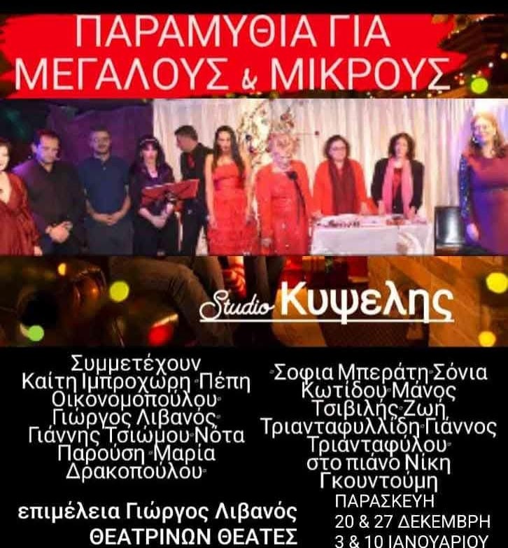 «ΠΑΡΑΜΥΘΙΑ ΓΙΑ ΜΕΓΑΛΟΥΣ ΚΑΙ ΜΙΚΡΟΥΣ» Μια τρυφερή εορταστική αναπόληση από τους θεατρίνων Θεατές για τρεις ακόμα Παρασκευές στο Studio Κυψέλης.