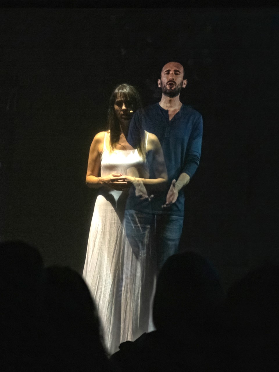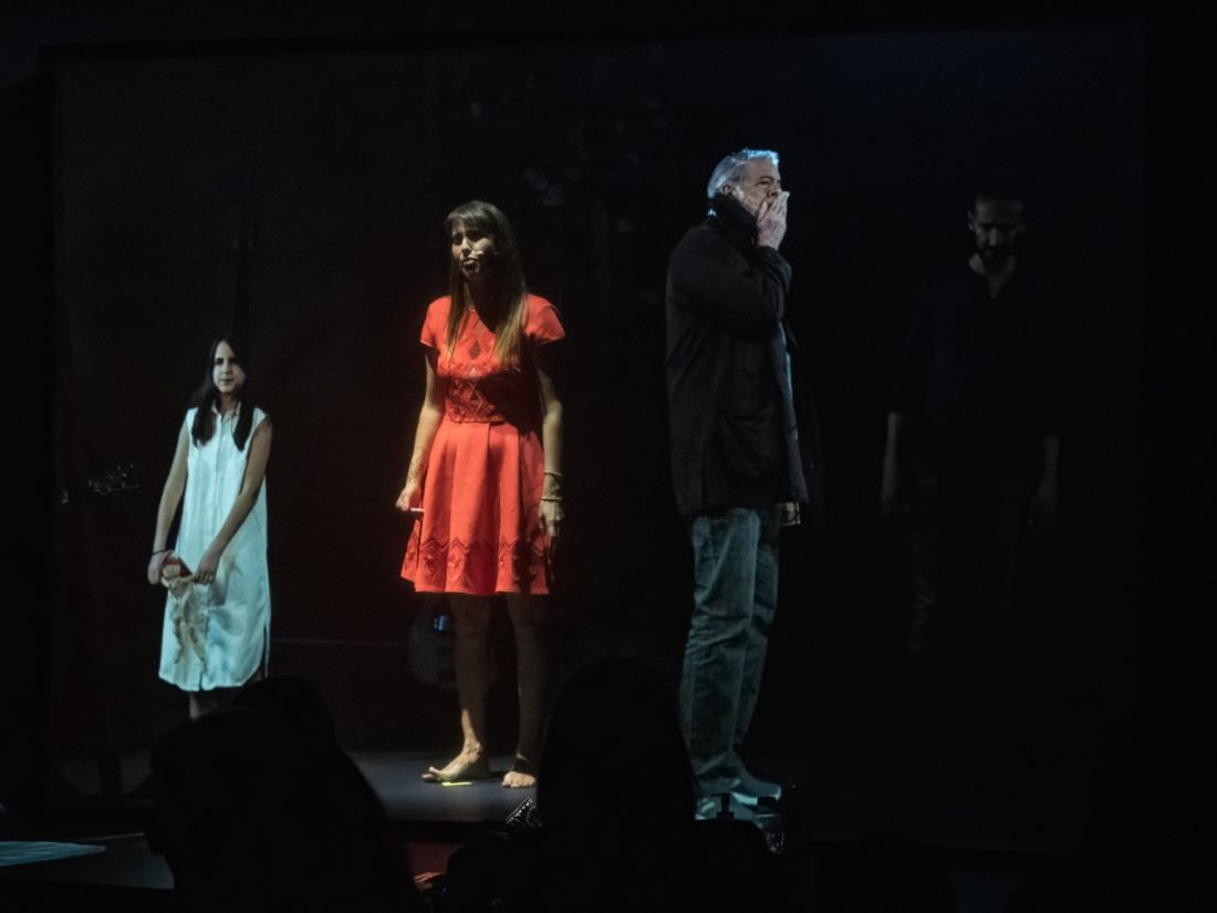 Έτσι, με την τεχνολογία των ολογραμμάτων, εμφανίζονται επί σκηνής, ο Φίλιππος Σοφιανός στον ρόλο του πατέρα, ο τραγουδιστής Γιώργος Καραδήμος στον ρόλο του «πρώην», ο συγγραφέας Θανάσης Χειμωνάς στον ρόλο του Άμλετ και η μικρή  Ειρήνη στον ρόλο του παιδικού εαυτού… και… λοιποί συγγενείς και φίλοι.