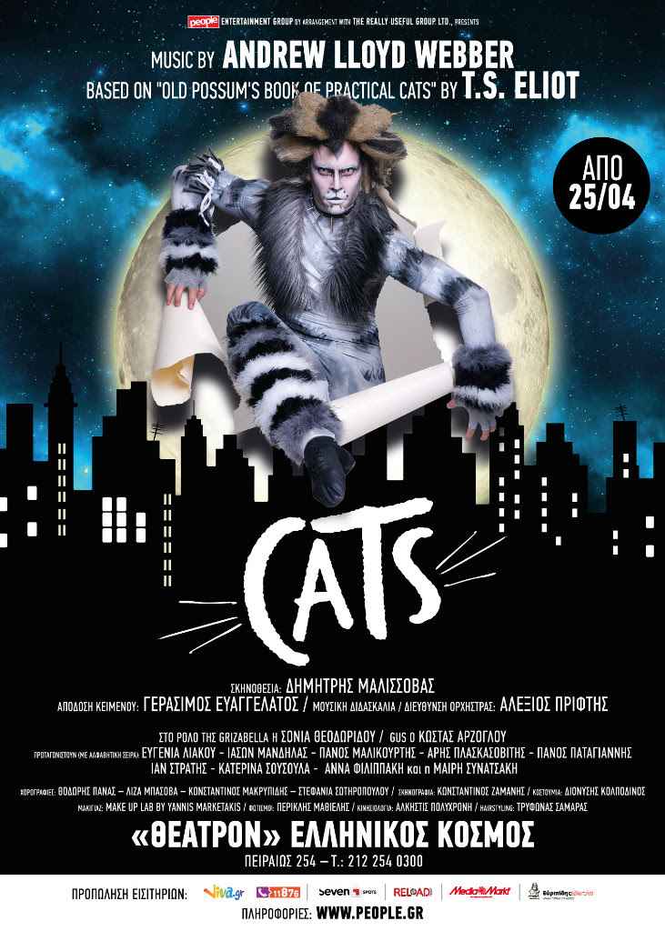 Δημήτρης Μαλισσόβας, Γεράσιμος Ευαγγελάτος και Αλέξιος Πρίφτης είναι η ελληνική dream team που ενώνει τις δυνάμεις της για να παρουσιάσει μία από τις μακροβιότερες επιτυχίες του μουσικού θεάτρου όλων των εποχών. Το έργο άφησε εποχή όταν πρωτοανέβηκε στο West End Του Λονδίνου το 1981. Το τραγούδι διαμάντι της παράστασης είναι φυσικά το Memory, μία μπαλάντα που πέρασε στην αιωνιότητα και εξαιτίας της ηχογράφησής της από την Μπάρμπαρα Στρέιζαντ. Στην ελληνική παράσταση το τραγούδι θα ερμηνεύσει η περιζήτητη σε όλο τον κόσμο σοπράνο Σόνια Θεοδωρίδου, που επέστρεψε πρόσφατα για να μείνει στην Ελλάδα μετά από σπουδαία καριέρα στην Ευρώπη και ειδικότερα στη Γερμανία.