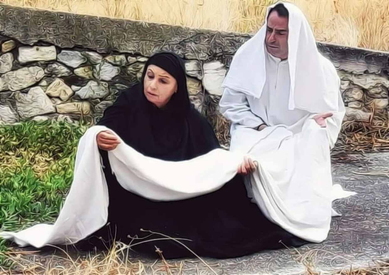 Μπροστά από τα μάτια της Ελπίδας θα παρελάσουν πρόσωπα του Θείου Δράματος, αλλά και της Καταστροφής της Σμύρνης. Ο Άγιος Ιωάννης, η Μαρία η Μαγδαληνή, ο Ιούδας, ο Πόντιος Πιλάτος, η Μοιχαλίδα, ο Χρυσόστομος Σμύρνης, ο Νουρεντίν Πασάς, αλλά και απλοί άνθρωποι θα παρουσιαστούν και θα μιλήσουν για τα δρώμενα, ενώ ταυτοχρόνως το υμνολόγιο και τα λόγια των Ευαγγελίων της Εκκλησίας και η προφορική μας παράδοση θα πλαισιώνουν τους λόγους των ηρώων.