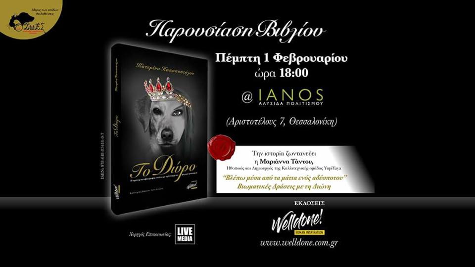 Την Πέμπτη 1η Φεβρουαρίου 2018 και ώρα 6 το απόγευμα, στο Βιβλιοπωλείο ΙΑΝΟS (Αριστοτέλους 7, Θεσσαλονίκη), θα γίνει η παρουσίαση του βιβλίου «Το Δώρο» της Κατερίνας Παπαποστόλου, η πρώτη αυτοβιογραφία σκύλου με τη δύναμη του μαγικού ρεαλισμού, που κυκλοφορεί από τις εκδόσεις Welldone.