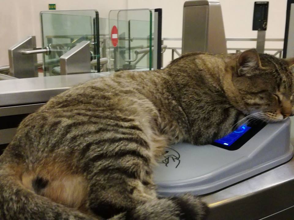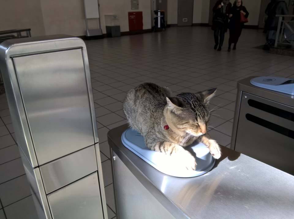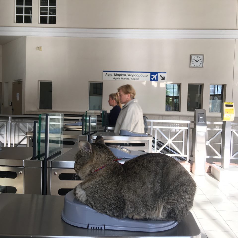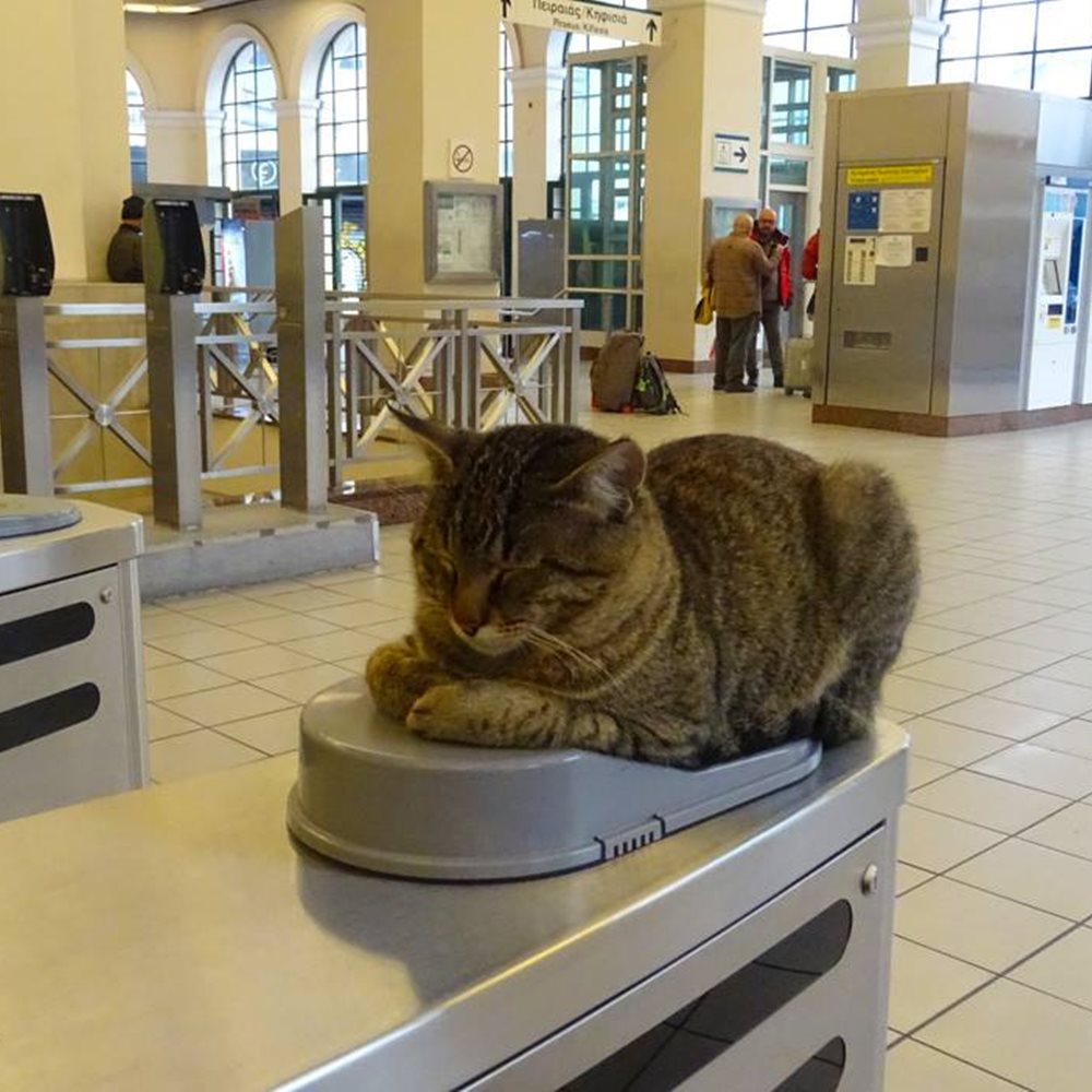 Εδώ και μερικές ημέρες τα μέσα κοινωνικής δικτύωσης έχουν κατακλυστεί από φωτογραφίες ενός γάτου, ο οποίος έχει «αράξει» στις μπάρες ηλεκτρονικού εισιτηρίου στο σταθμό του Μετρό στο Μοναστηράκι.
